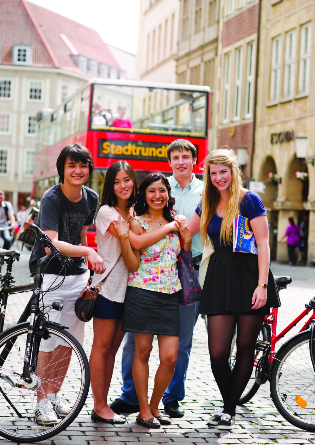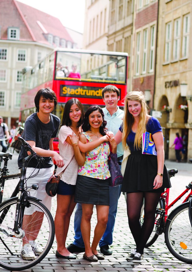 当校のアンケートでは、コース参加者の90%以上がミュンスターに「非常に良い」という最高の評価を与えて下さってます。豊かな自然、フレンドリーな人々、興味深い建築物、充実したレジャー施設、大きすぎず小さすぎず、居心地の良い、魅力的な、あるいは単に美しいミュンスターに非常に満足している事が理由としてあげられます。